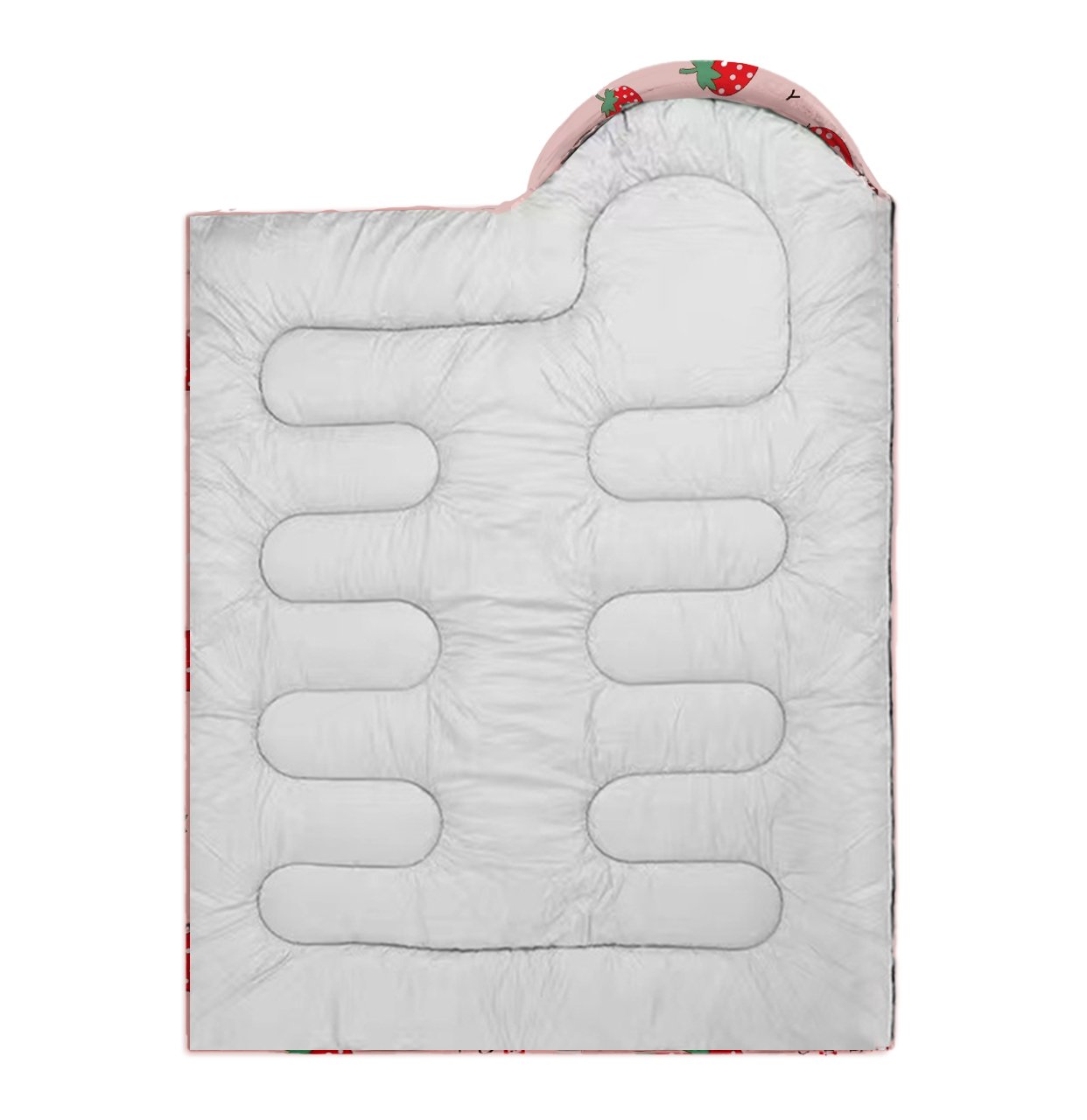 The middle part of the sleeping bag is filled with high-quality synthetic cotton. This synthetic cotton has outstanding thermal insulation performance. It can maintain a certain degree of fluffiness while effectively preventing heat loss, creating a warm and comfortable sleeping environment for the user. Additionally, synthetic cotton is lightweight and does not add excessive weight to the sleeping bag, making it easy to carry. Whether for mountain climbing, camping, or other outdoor activities, it will not become an extra burden.